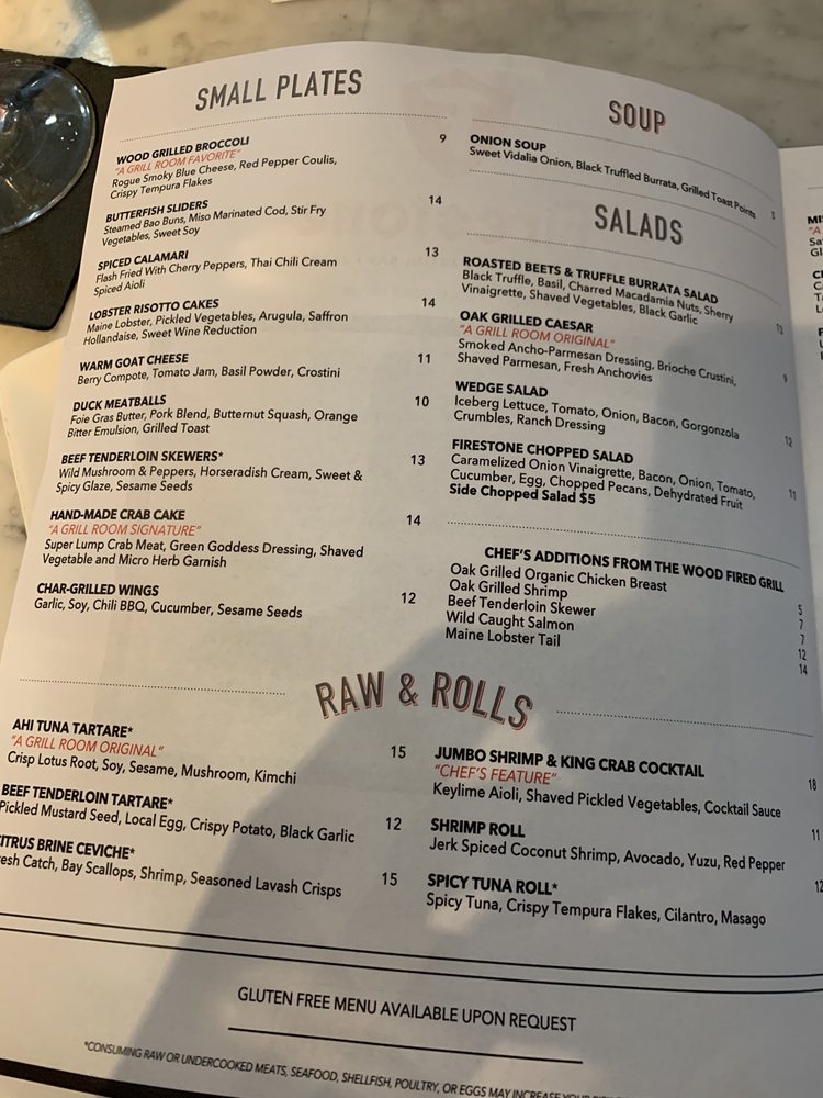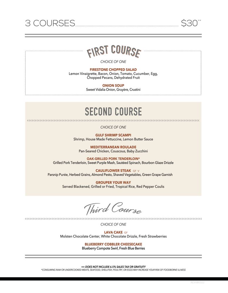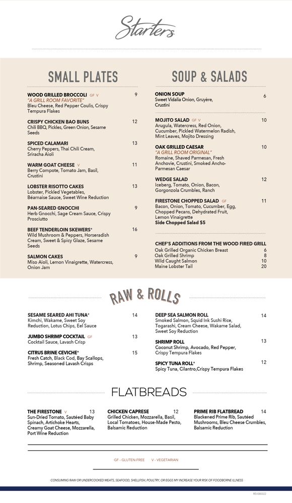 The Firestone Menu