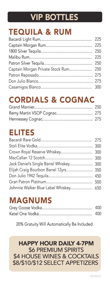 Ketel one vodka, nolet's gin. Served classic, dry or dirty.